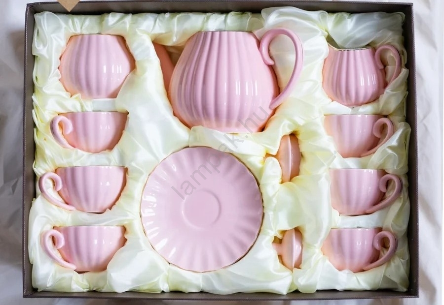 15 darabos porcelán kávészett, rózsaszín