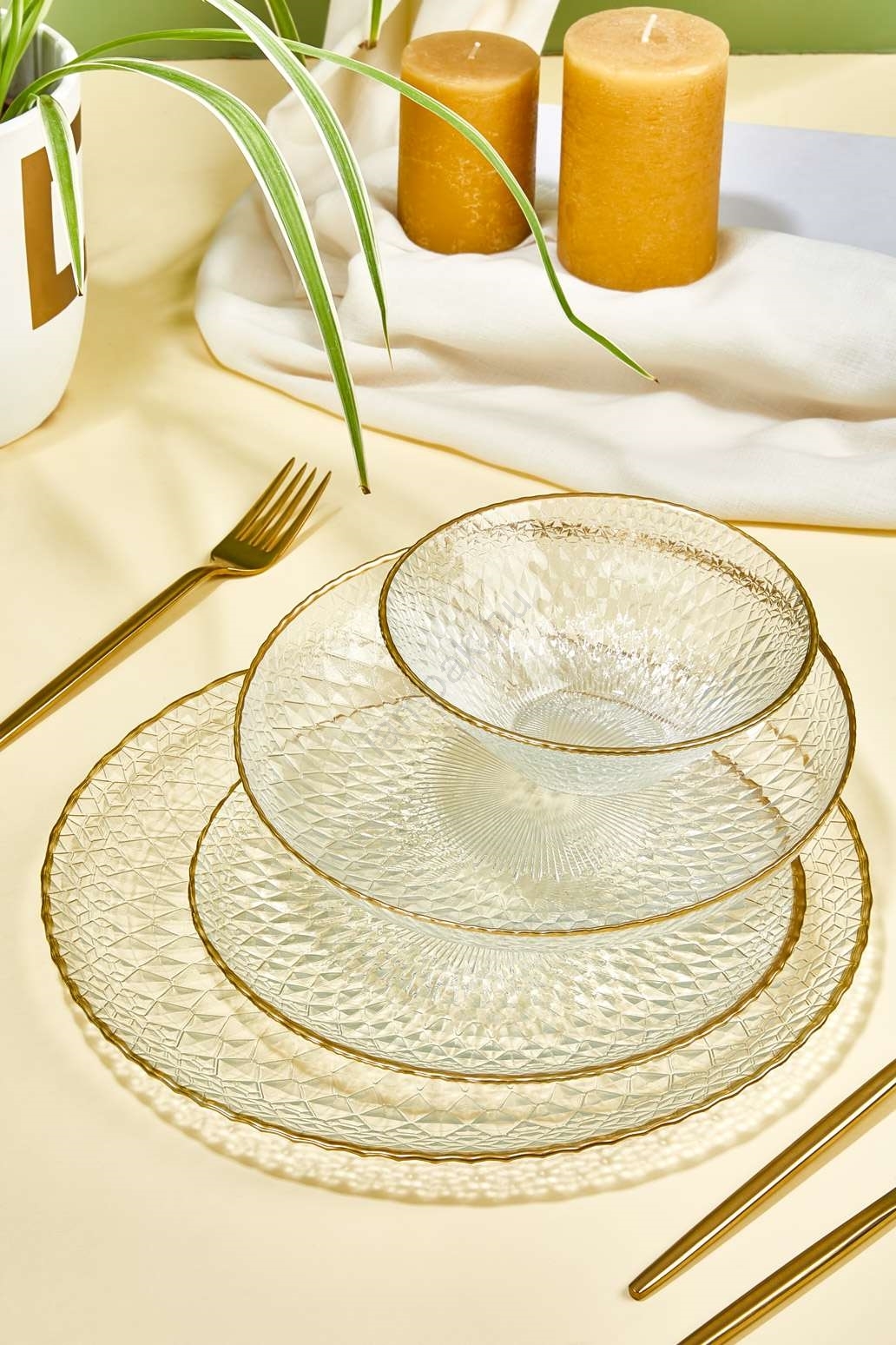 24 darabos étkészlet átlátszó/arany/üveg