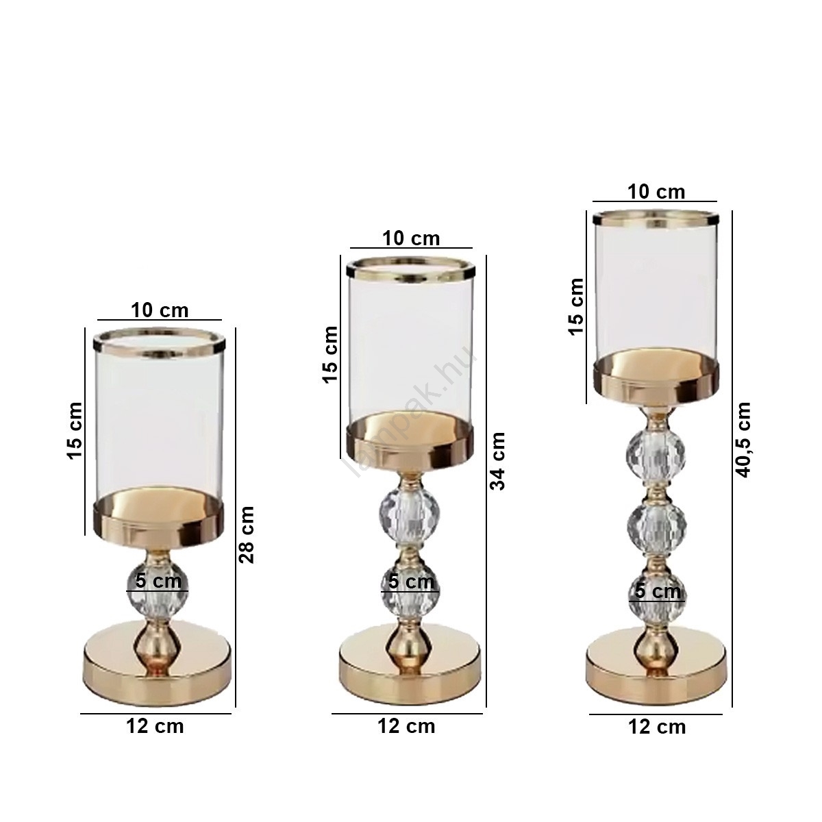 • Elegáns, aranyszínű, háromrészes gyertyatartó készlet.