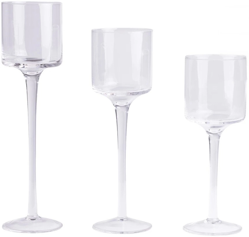 • Elegáns, háromdarabos átlátszó gyertyatartó készlet.