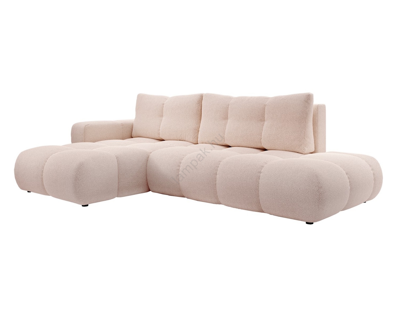 • ALMADA L-alakú, balos, ággyá nyitható kárpitozott ülőgarnitúra tárolórekesszel, világos bézs