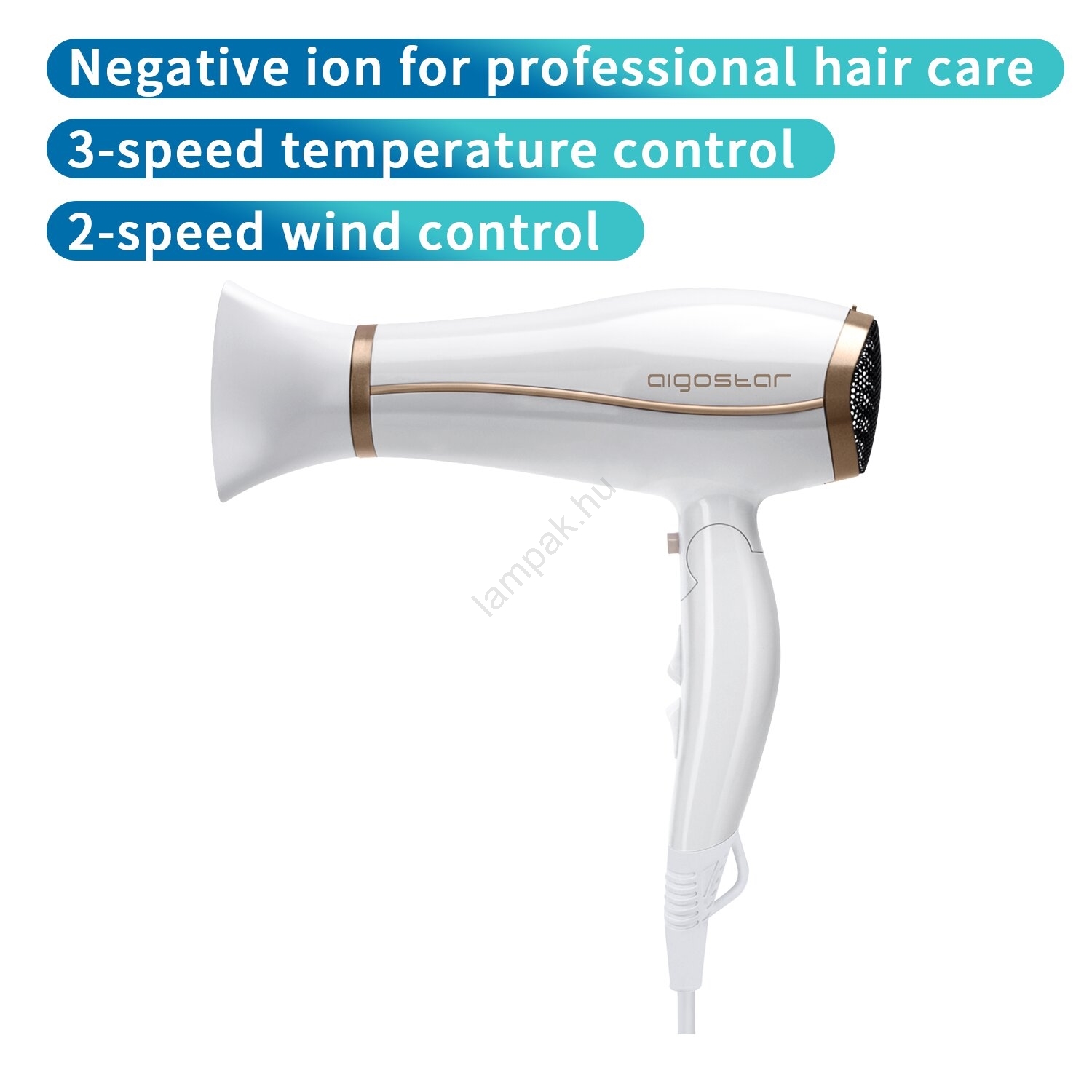 Aigostar - Hajszárító ionizátorral 2200W/230V fehér