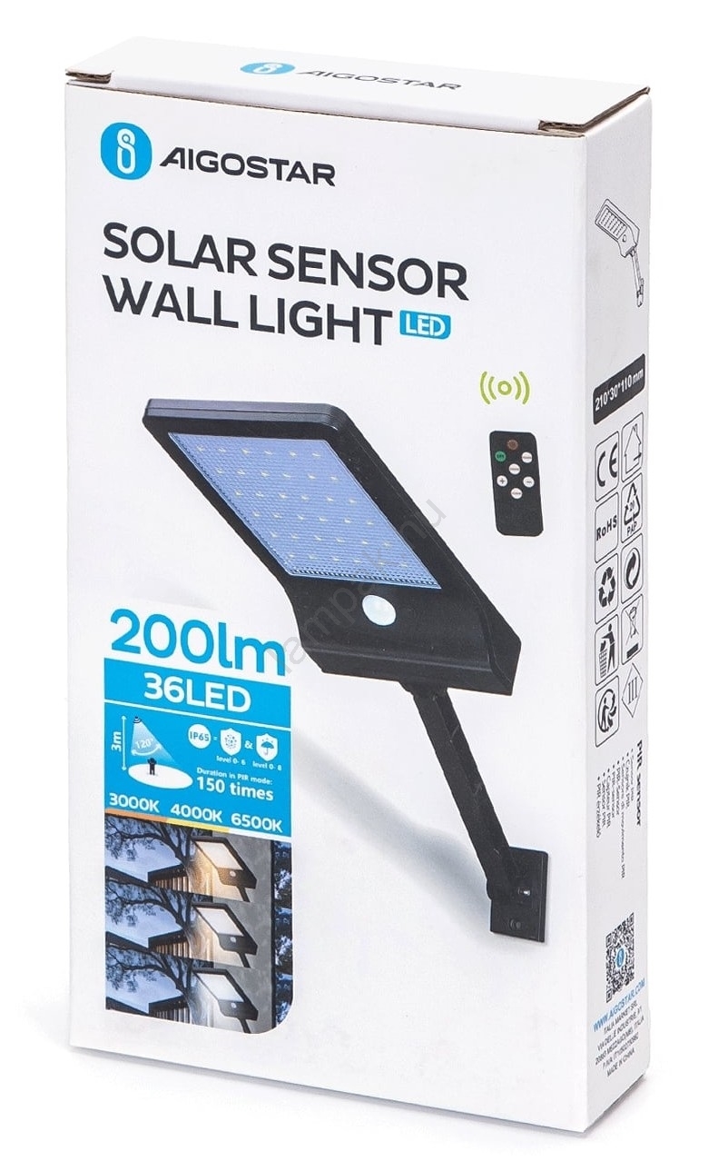 Aigostar - LED dimmelhető napelemes lámpa érzékelővel LED/2,3W/5,5V IP65 1800 mAh + távirányító