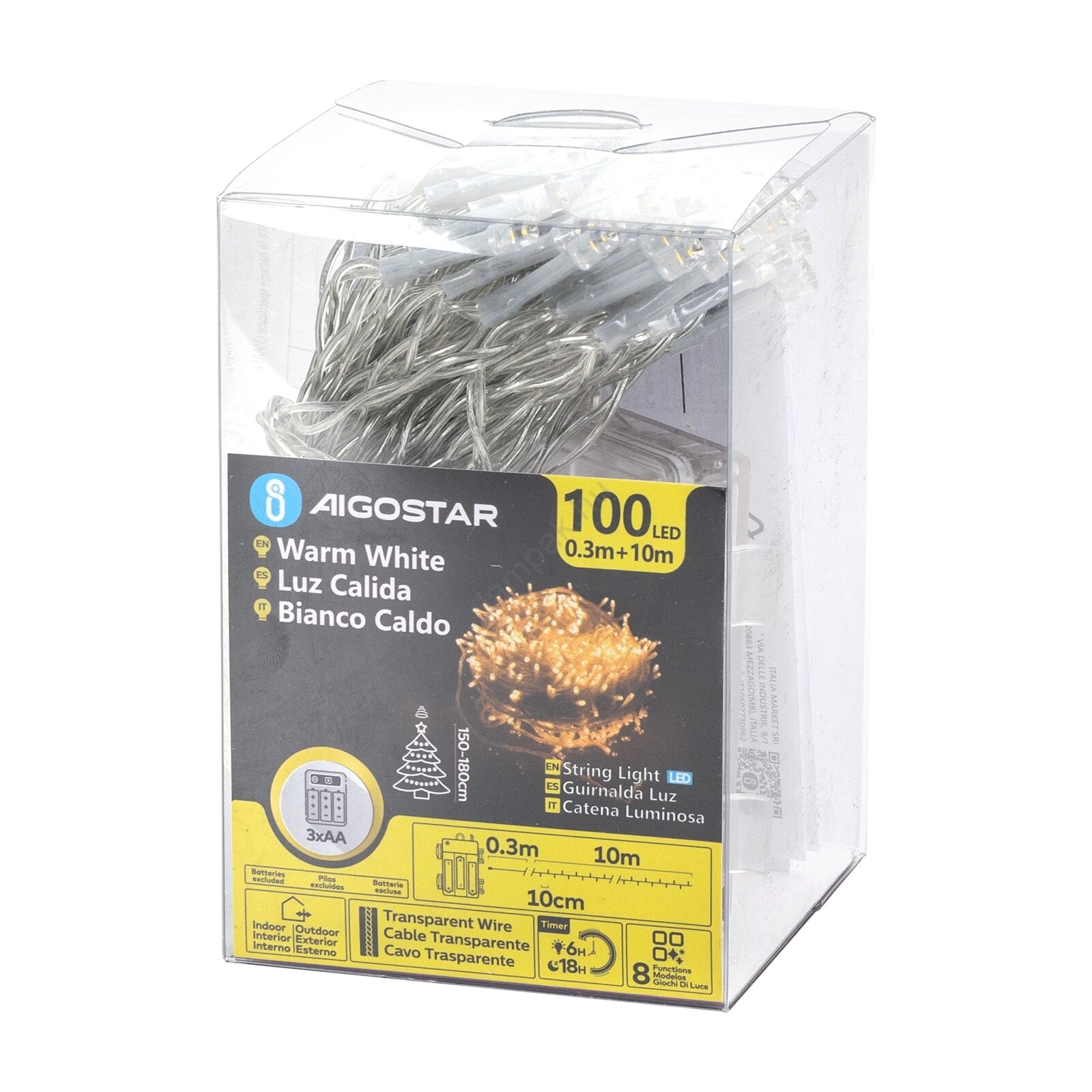 Aigostar -LED kültéri fényfüzér 100xLED/8 üzemmód 3xAA 10,3m IP44 meleg fehér