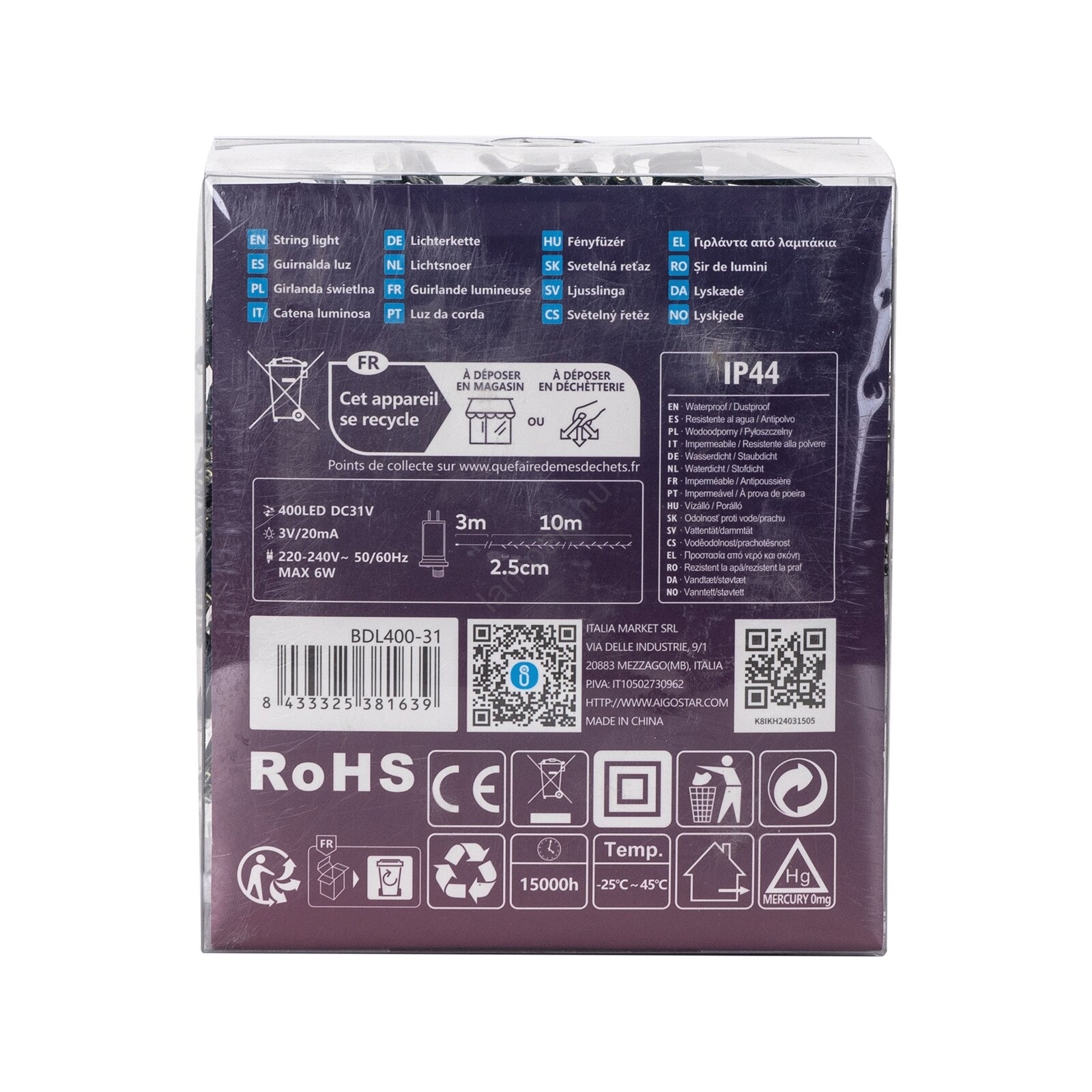 • Aigostar - LED kültéri karácsonyi fényfüzér 400 db LED/8 funkciós, 13 m, IP44, meleg fehér