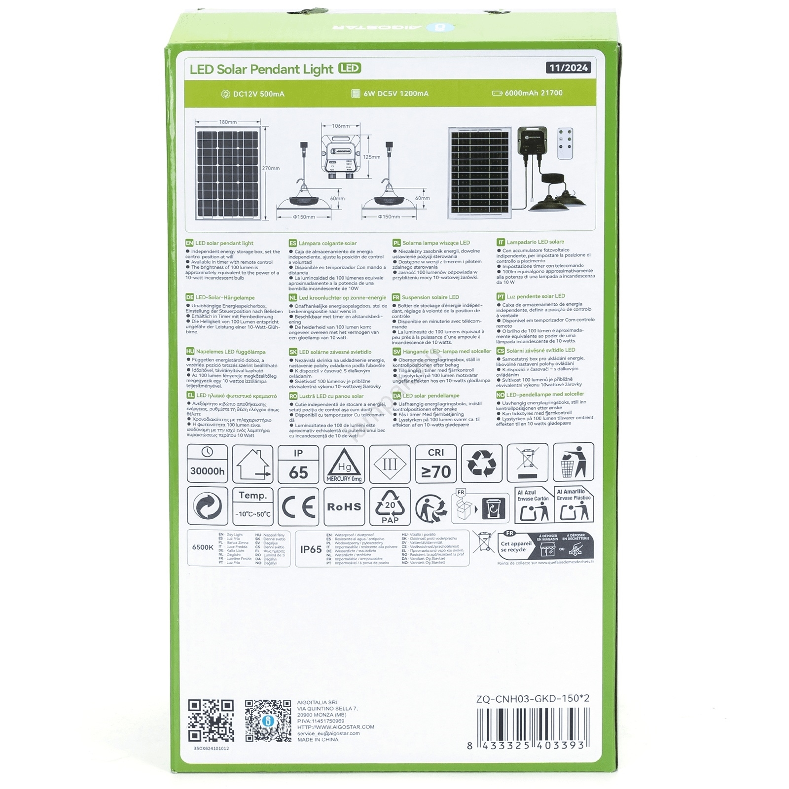 Aigostar - LED Napelemes csillár érzékelővel 2xLED/35W/12V 6000 mAh 6500K átm. 15 cm + távirányítás