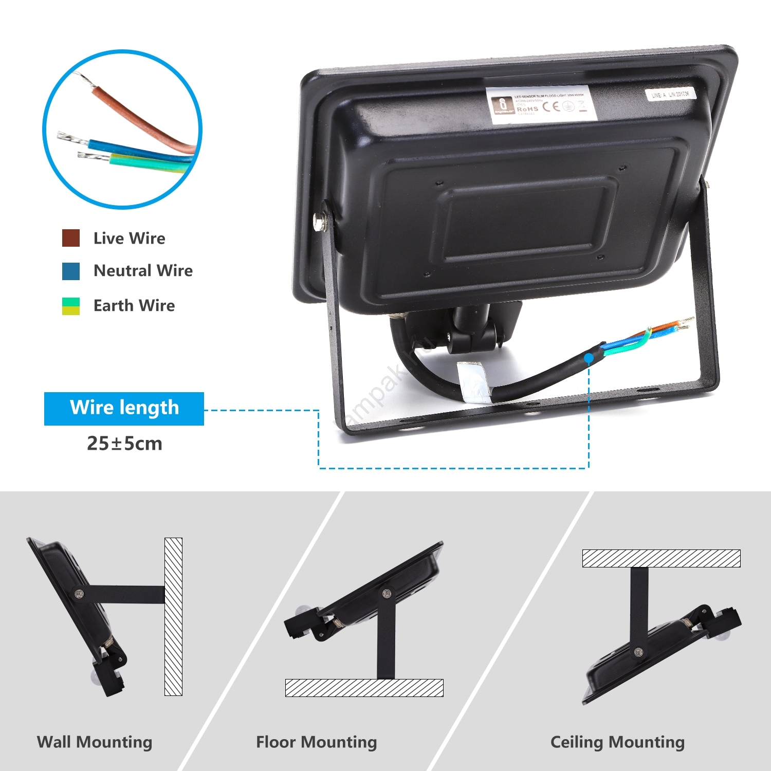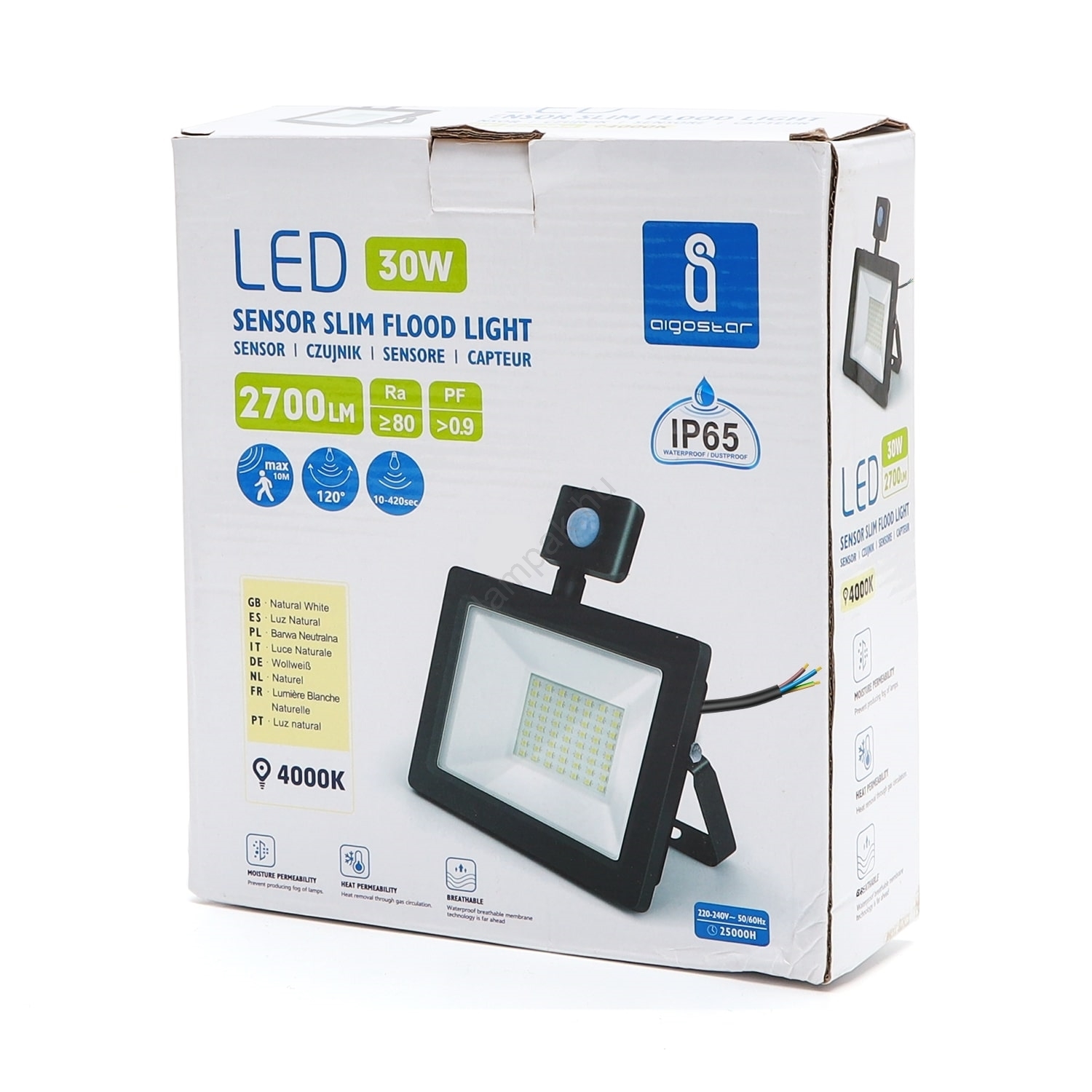 Aigostar - LED Reflektor érzékelővel LED/30W/230V 4000K IP65 fekete