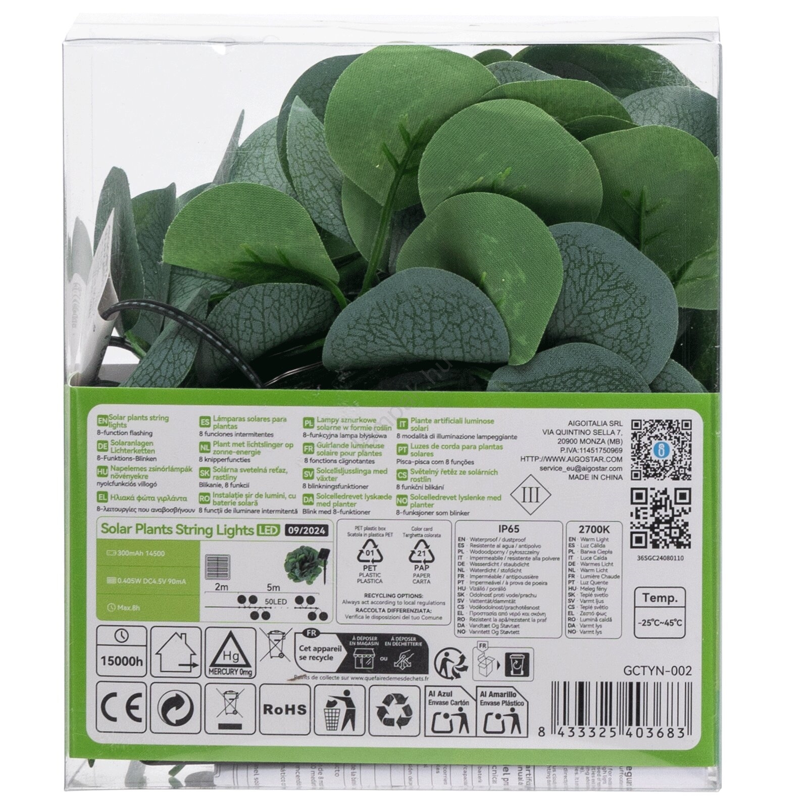 Aigostar - LED Napelemes fényfüzér 50xLED/7m IP65 300 mAh meleg fehér eukaliptusz