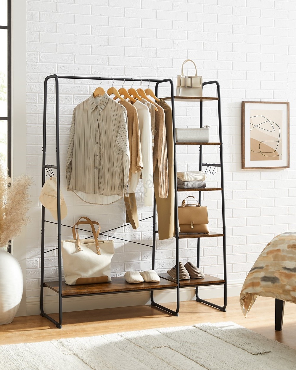 • Akassza fel kabátjait, ingjeit és nadrágjait a teljes hosszában végigfutó felső rúdon; az 5 tárolópolcra pakolhat táskákat, cipőket, dobozokat,  kalapokat, sálakat, esernyőket és egyéb szükséges holmikat.
