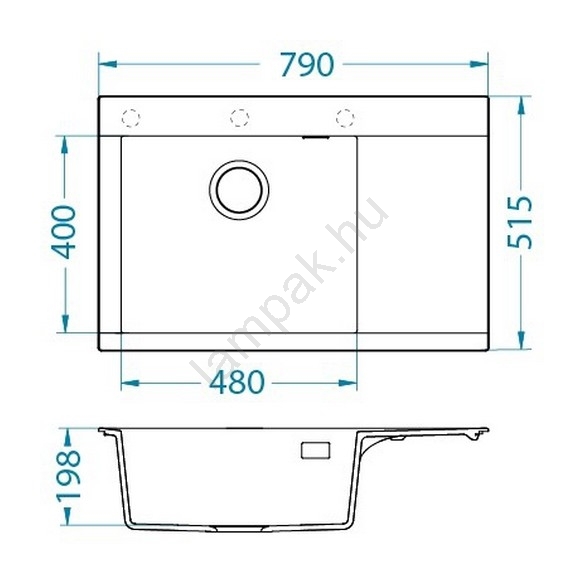 • A csomag tartalma: gránit mosogató, rögzítőelemek, 3 1/2 kosárszűrős lefolyó, szifon mosogatógép-csatlakozóval.