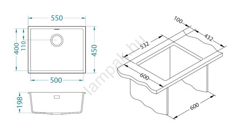 • Alsó rögzítés – a mosogató a munkalap alá kerül beépítésre.