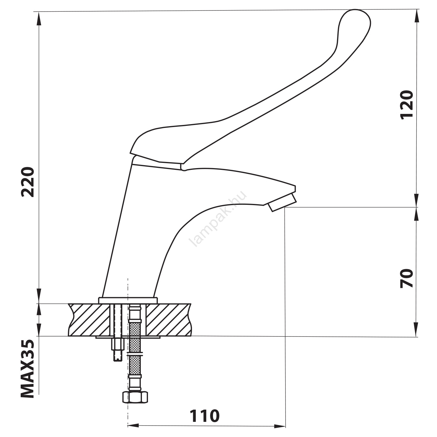 • Álló mosdócsaptelep orvosi használatra.
