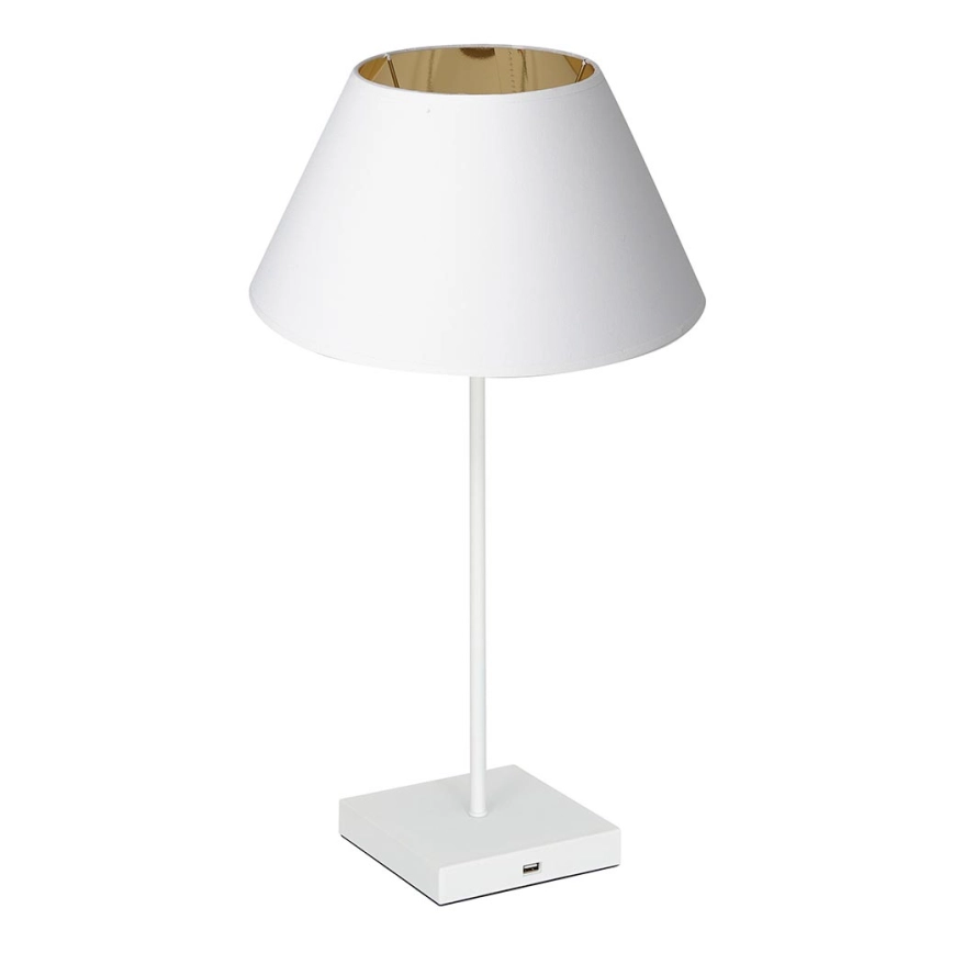 Asztali lámpa USB konnektorral 1xE27/60W/230V fehér