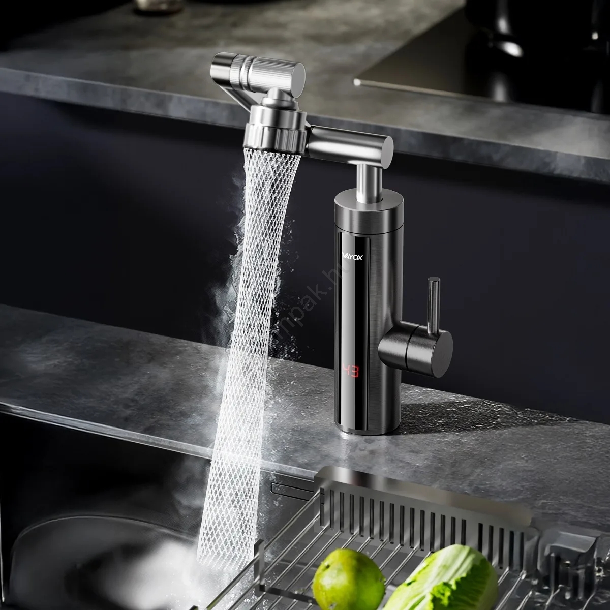Átfolyós vízmelegítő LED kijelzővel 3000W/230V IPX4 antracit