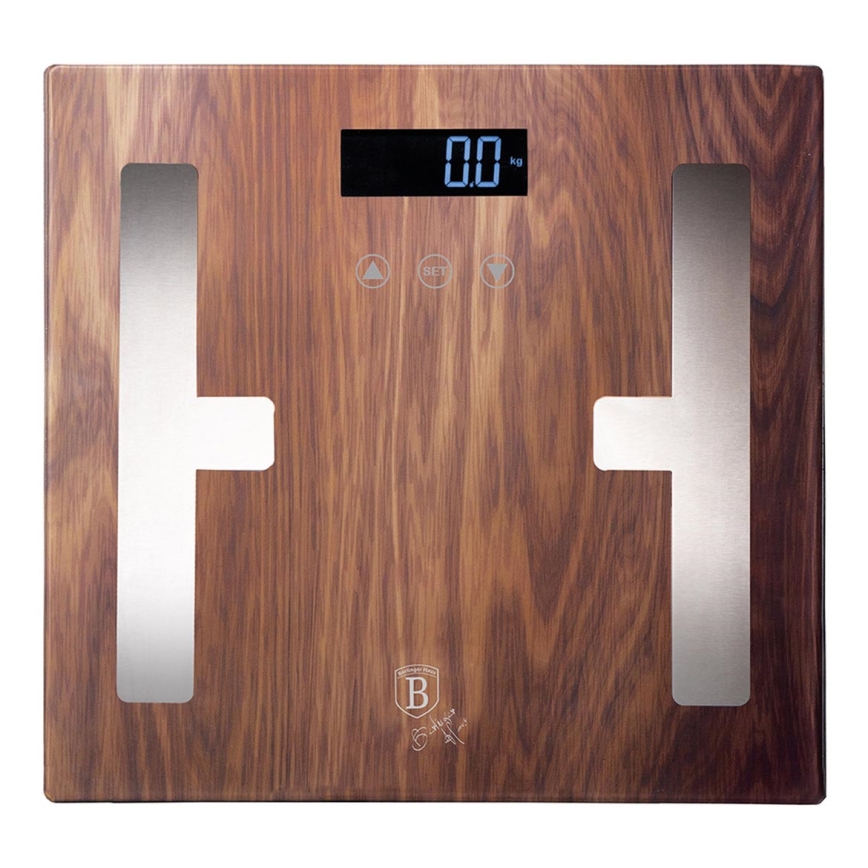 BerlingerHaus - Személyi mérleg LCD kijelzővel 2xAAA barna/matt króm