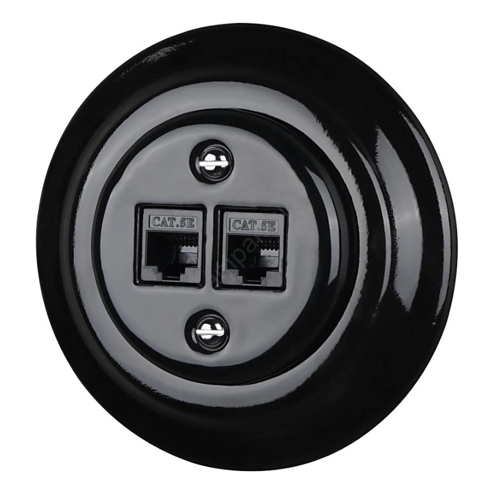 Bohemia-Design - Porcelán retro Ethernet csatlakozó kerettel, 2× CAT5e, fekete