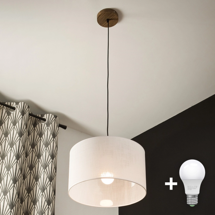 • Brilagi - LED Csillár zsinóron ANTHONY 1xE27/60W/230V tölgy/fehér