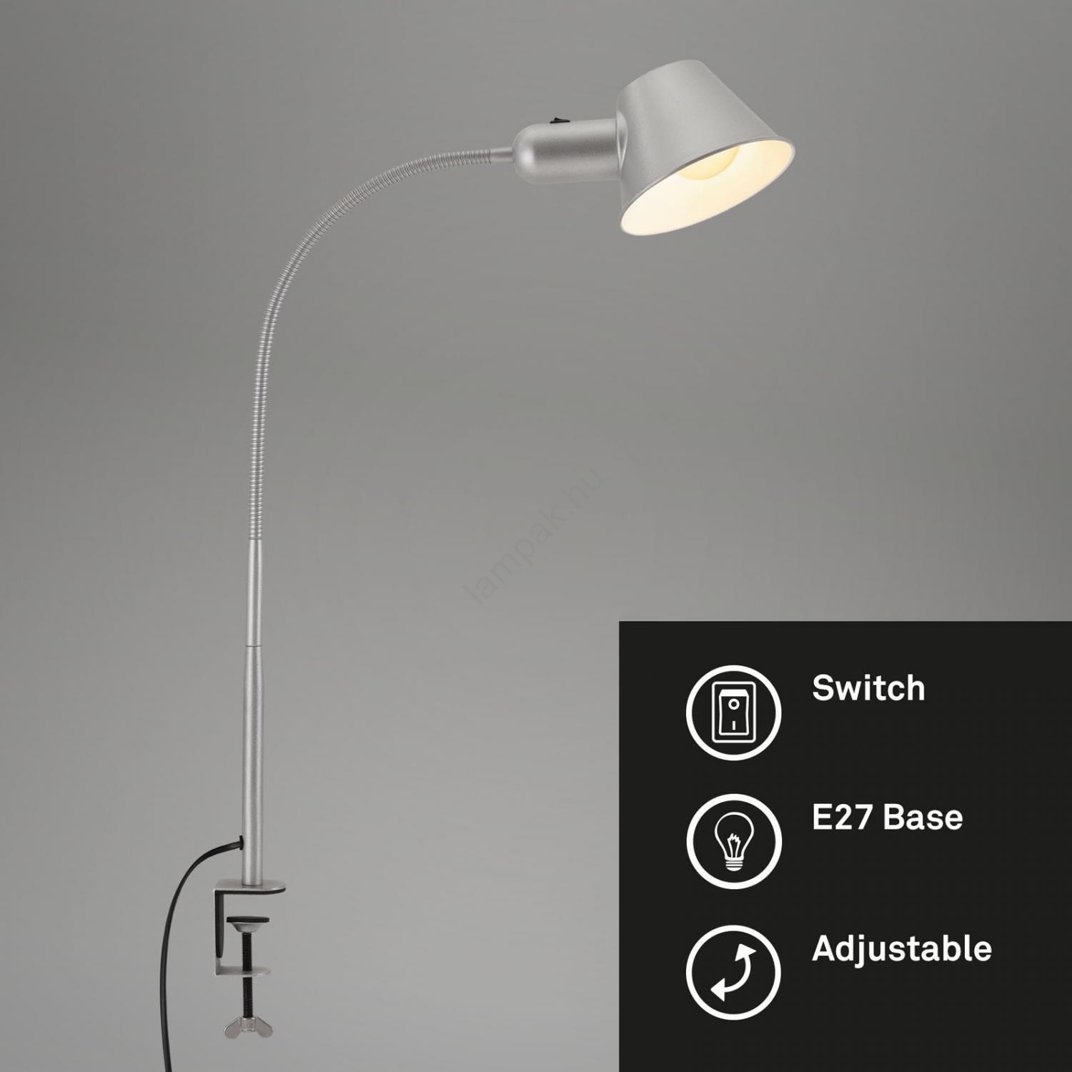 Brilo - Rugalmas csíptetős asztali lámpa 1xE27/10W/230V ezüstszínű