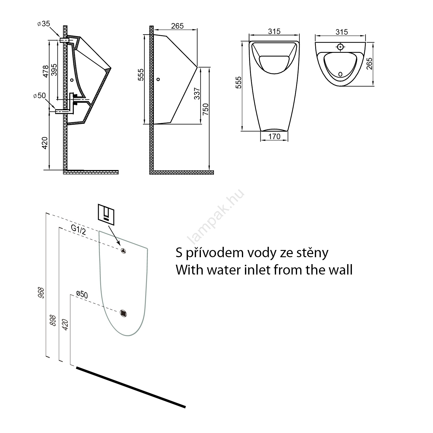 Bruckner - Piszoár SCHWARN hátsó bemenet, hátsó szifon kerámia/fehér