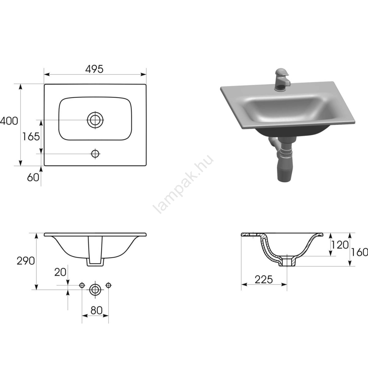 • A mosdó csaptelepe nem tartozék.