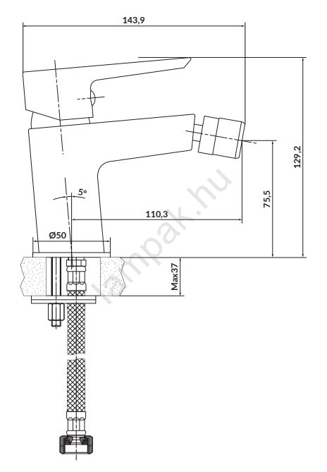 • A csaptelep flexibilis, 40 cm hosszú Eco EPDM csatlakozócsövekkel is rendelkezik.