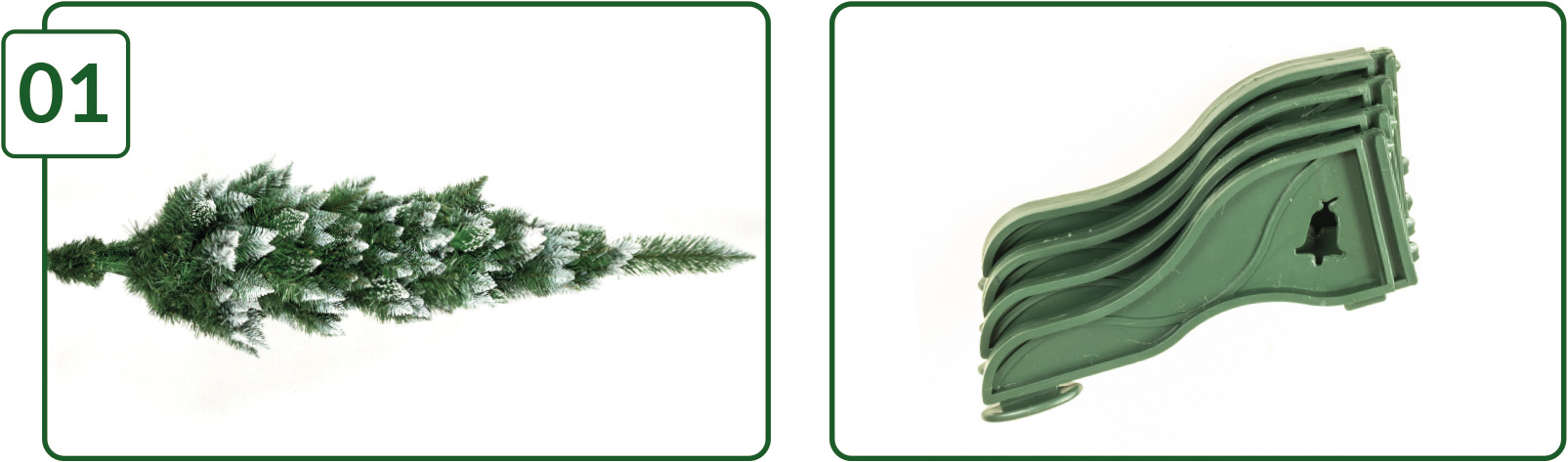 Ahhoz, hogy a fenyő beleférjen a dobozba és rendben eljusson önhöz, szükséges egy vonalban hagyni. Ez azt jelenti, hogy kicsomagolást követően a fenyő ágai nincsenek széthúzva. A csomagban több tartozékot is talál. Ez attól is függ, mekkora műfenyőt választott. Ha csak egy kisebb fenyőt vásárolt, akkor a csomagban csak a fát és az állványt találja. Azonban ha kétméteres vagy még ennél is magasabb fenyőt választott, itt is megtalálja a fát két részben és természetesen a talpát.