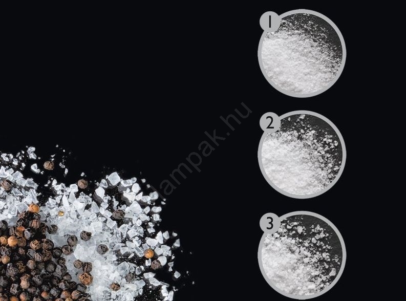 • A finomtól a durváig terjedő őrléshez egyszerűen forgassa el a gyűrűt a hat (bors) vagy három (só) előre beállított durvasági szint egyikére.