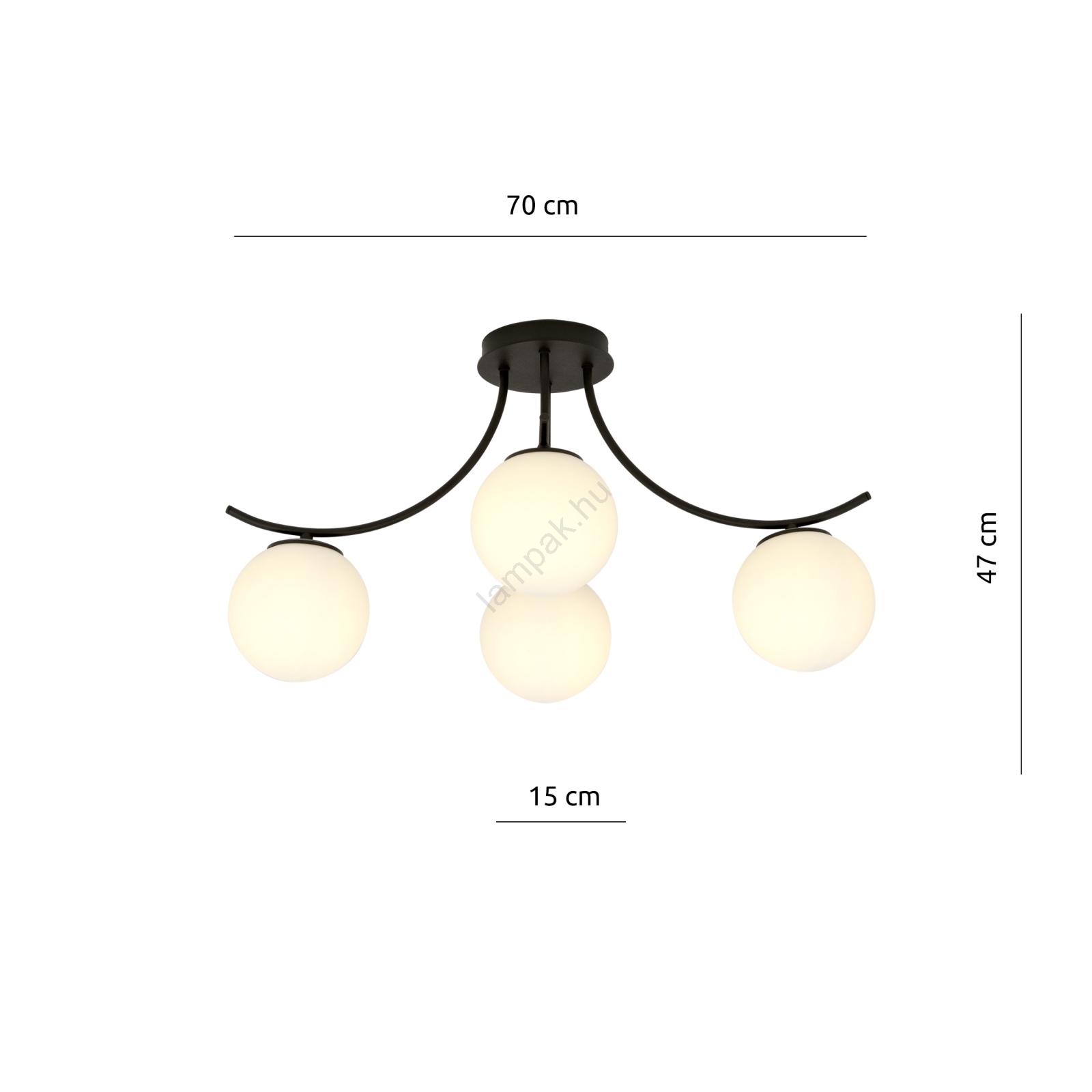 A Felületre szerelhető csillár BOSTON 4xE14/10W/230V fekete a szép és funkcionális dizájn jellemzi.  A világításhoz egy E14 aljzattal ellátott izzó alkalmas. Itt további izzókat vásárolhat kedvező áron. Érdekes kiegészítője lesz otthonának.