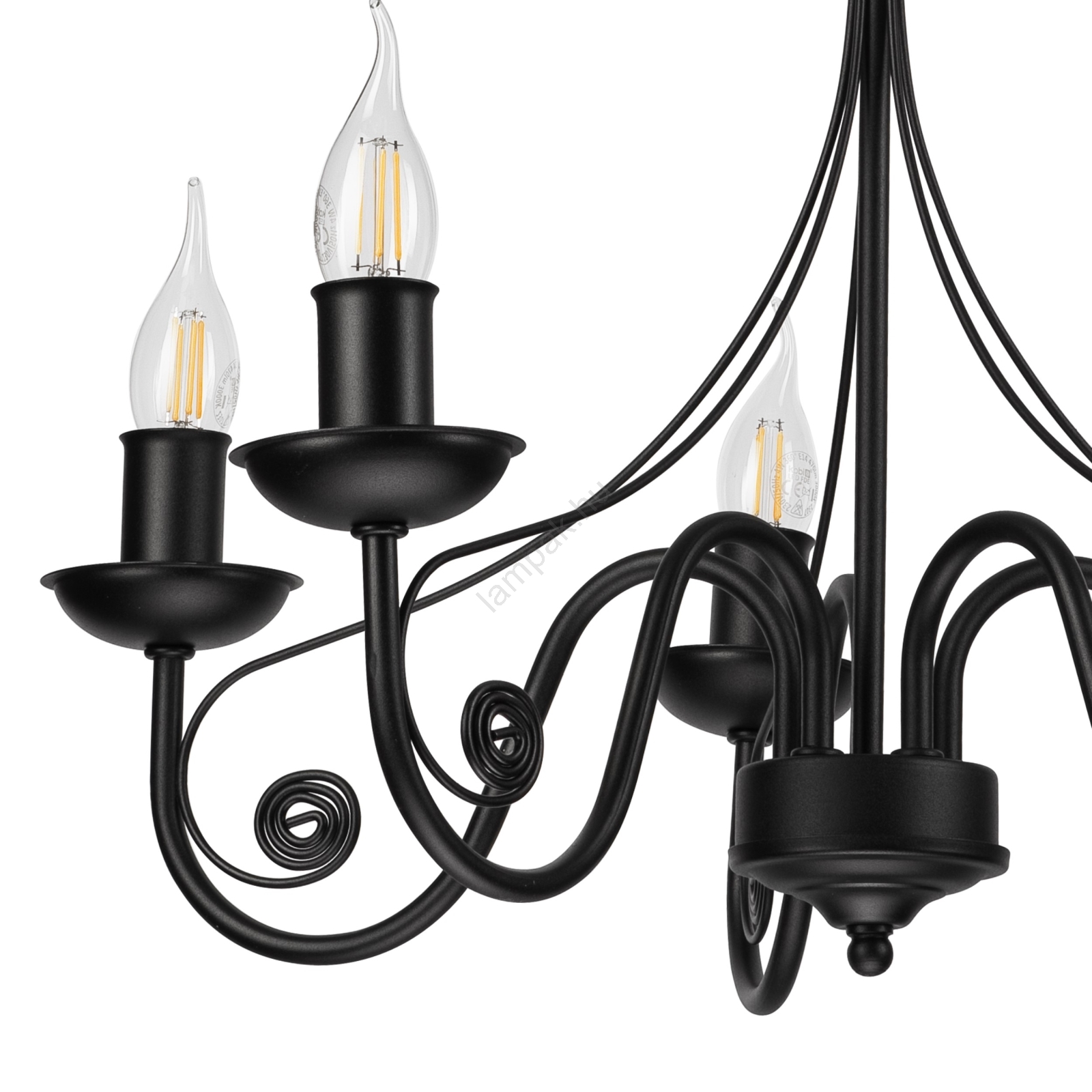 A Csillár láncon DONATO 5xE14/40W/230V fekete a szép és funkcionális dizájn jellemzi.  A világításhoz egy E14 aljzattal ellátott izzó alkalmas. Itt további izzókat vásárolhat kedvező áron. Érdekes kiegészítője lesz otthonának.