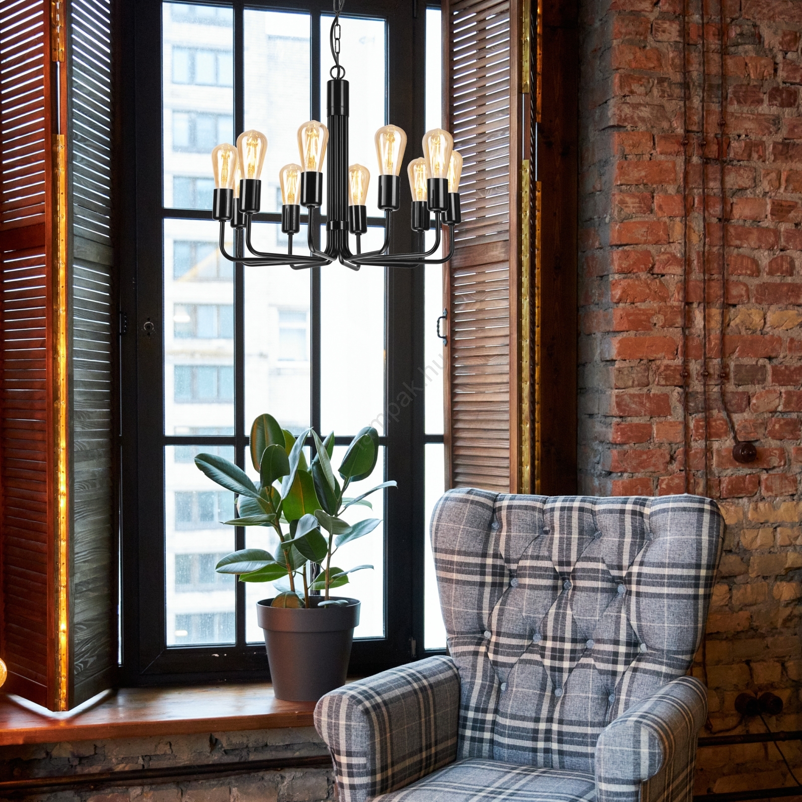 A Csillár láncon TIFFANY 10xE27/60W/230V fekete a szép és funkcionális dizájn jellemzi.  A világításhoz egy E27 aljzattal ellátott izzó alkalmas. Itt további izzókat vásárolhat kedvező áron. Érdekes kiegészítője lesz otthonának.