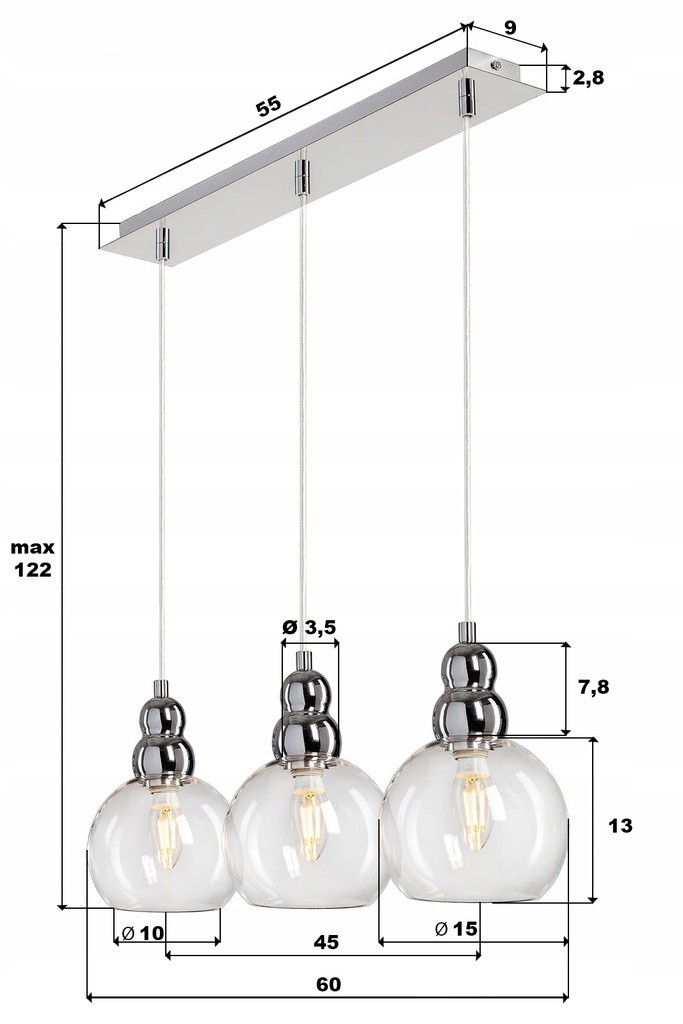 A Csillár zsinóron AKSO 3xE14/40W/230V ezüst a szép és funkcionális dizájn jellemzi.  A világításhoz egy E14 aljzattal ellátott izzó alkalmas. Itt további izzókat vásárolhat kedvező áron. Érdekes kiegészítője lesz otthonának.