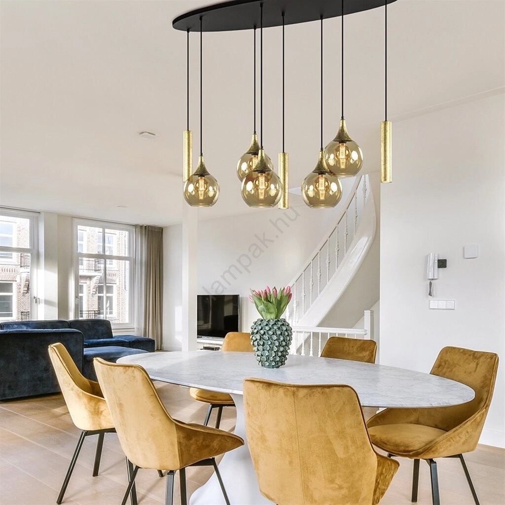 A Csillár zsinóron CALYPSO 3xGU10/60W/230V + 5xE27/60W fekete/arany a szép és funkcionális dizájn jellemzi.  A világításhoz egy E27, GU10 aljzattal ellátott izzó alkalmas. Itt további izzókat vásárolhat kedvező áron. Érdekes kiegészítője lesz otthonának.