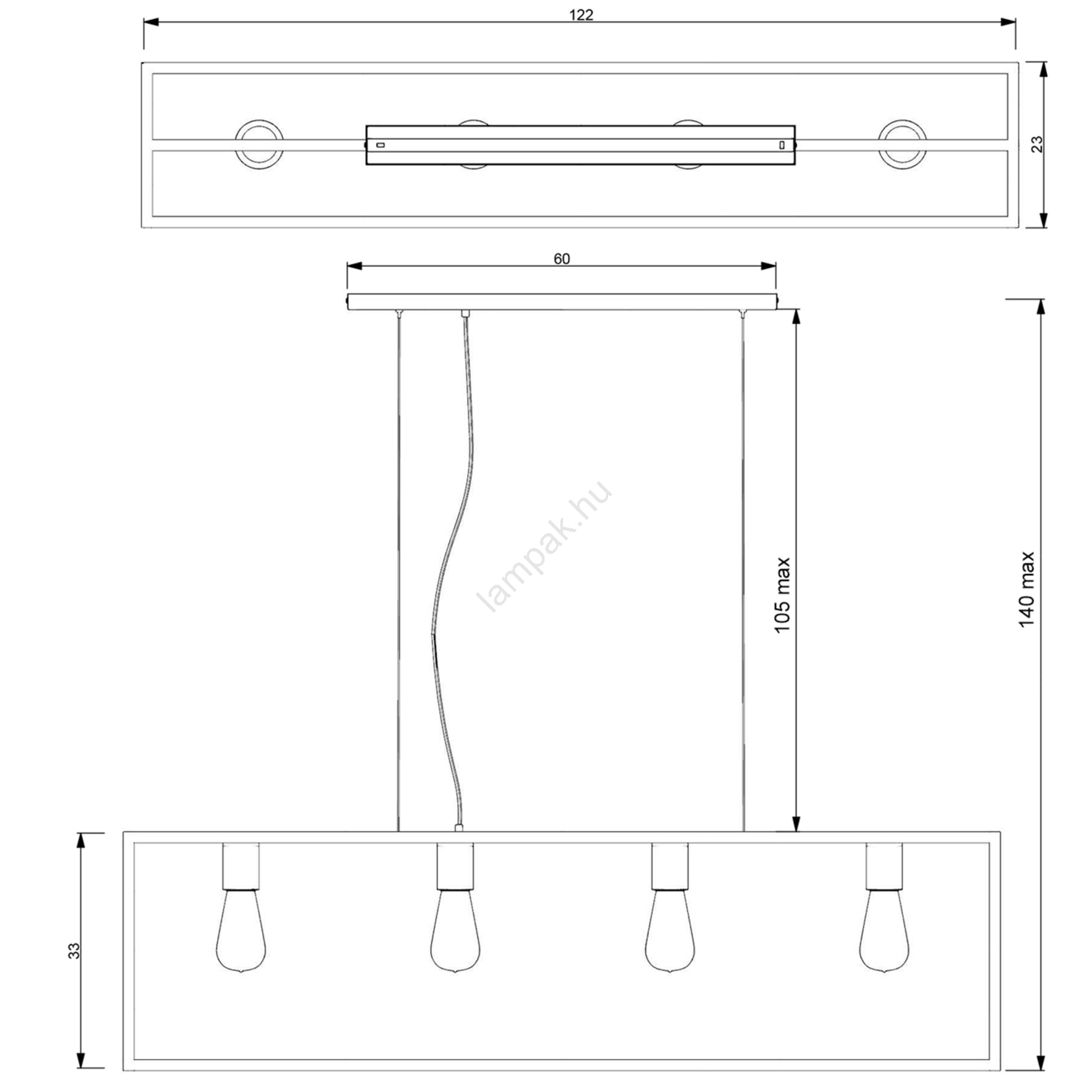A Csillár zsinóron FRAME 4xE27/60W/230V fekete a szép és funkcionális dizájn jellemzi.  A világításhoz egy E27 aljzattal ellátott izzó alkalmas. Itt további izzókat vásárolhat kedvező áron. Érdekes kiegészítője lesz otthonának.