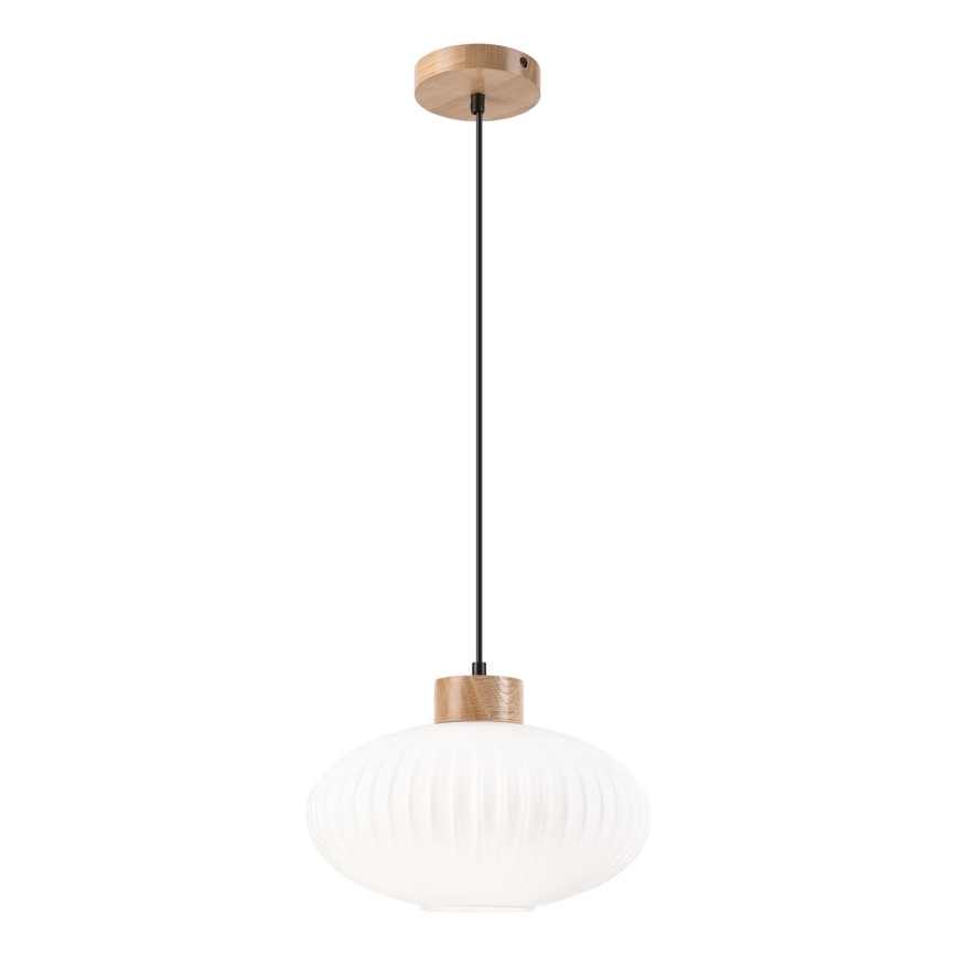 Csillár zsinóron HARMONY 1xE27/15W/230V átm. 30 cm fehér/tölgy