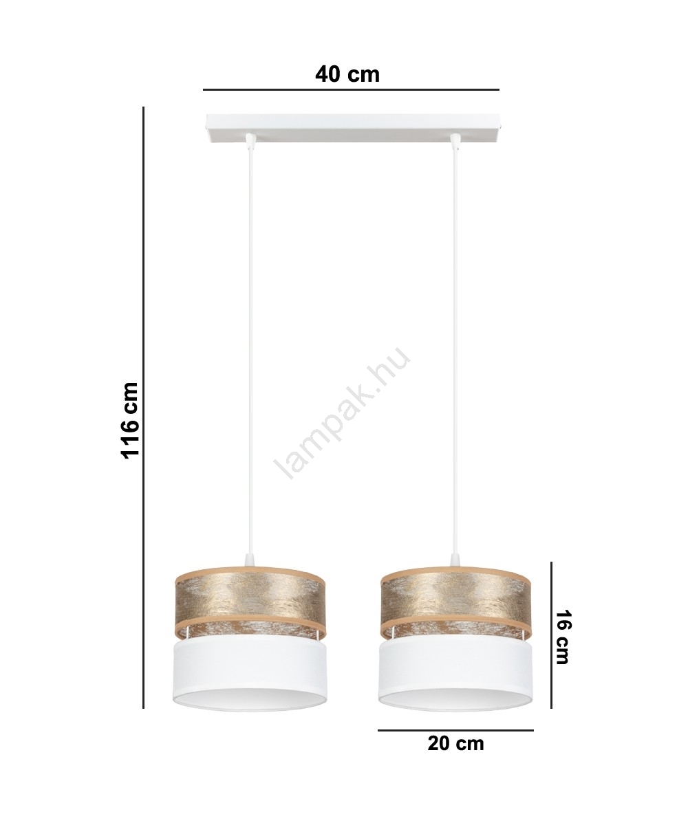 A Csillár zsinóron LIMA 2xE27/60W/230V arany/fehér a szép és funkcionális dizájn jellemzi.  A világításhoz egy E27 aljzattal ellátott izzó alkalmas. Itt további izzókat vásárolhat kedvező áron. Érdekes kiegészítője lesz otthonának.