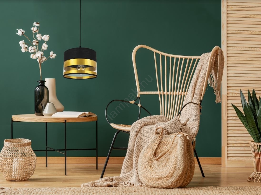 A Csillár zsinóron MILO 1xE27/60W/230V arany/fekete a szép és funkcionális dizájn jellemzi.  A világításhoz egy E27 aljzattal ellátott izzó alkalmas. Itt további izzókat vásárolhat kedvező áron. Érdekes kiegészítője lesz otthonának.