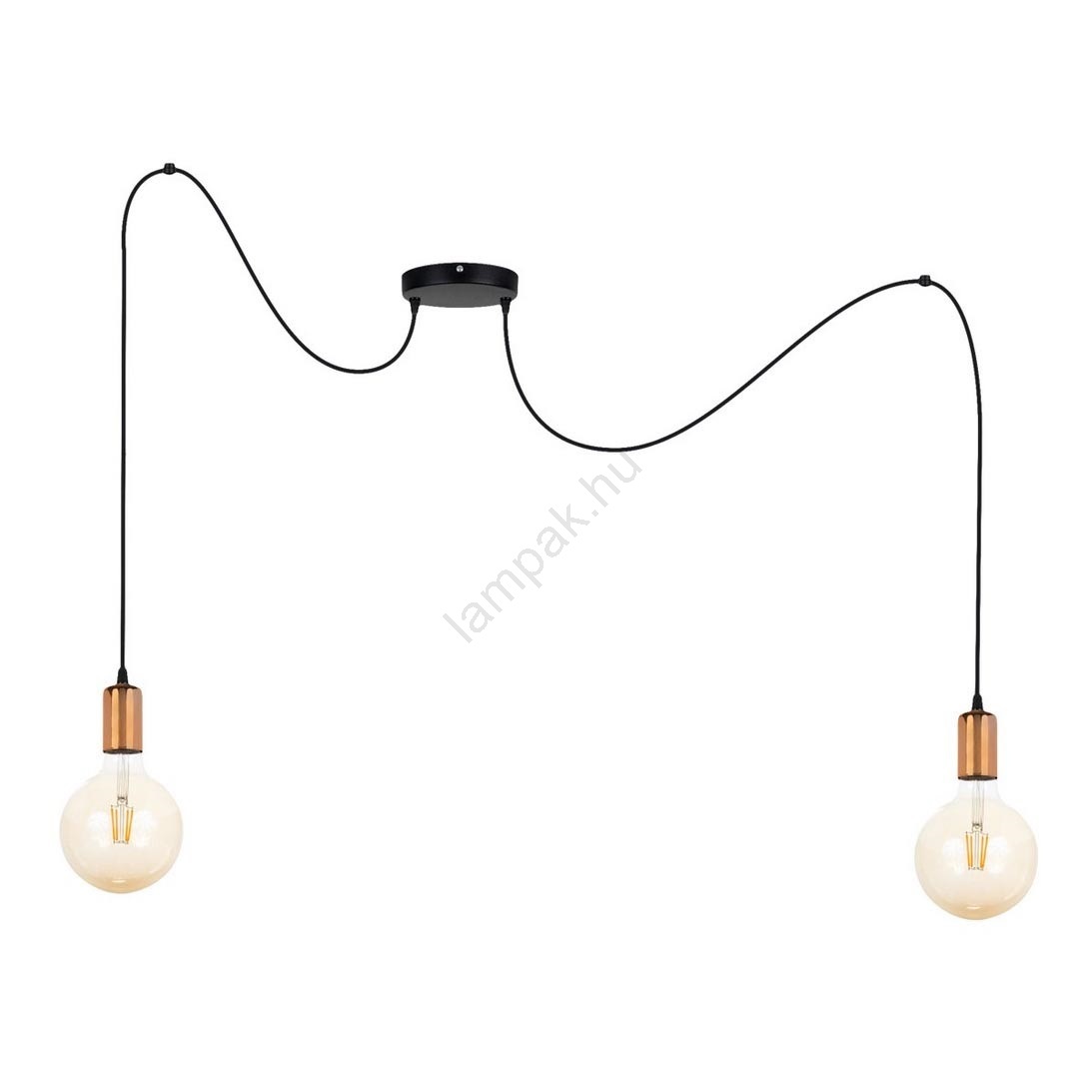 A Csillár zsinóron MIROS 2xE27/60W/230V fekete/réz a szép és funkcionális dizájn jellemzi.  A világításhoz egy E27 aljzattal ellátott izzó alkalmas. Itt további izzókat vásárolhat kedvező áron. Érdekes kiegészítője lesz otthonának.