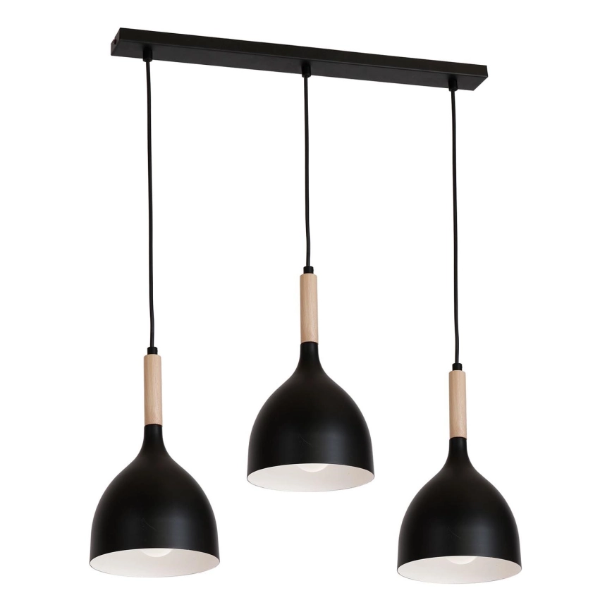 Csillár zsinóron NOAK WOOD 3xE27/15W/230V fekete/bükkfa