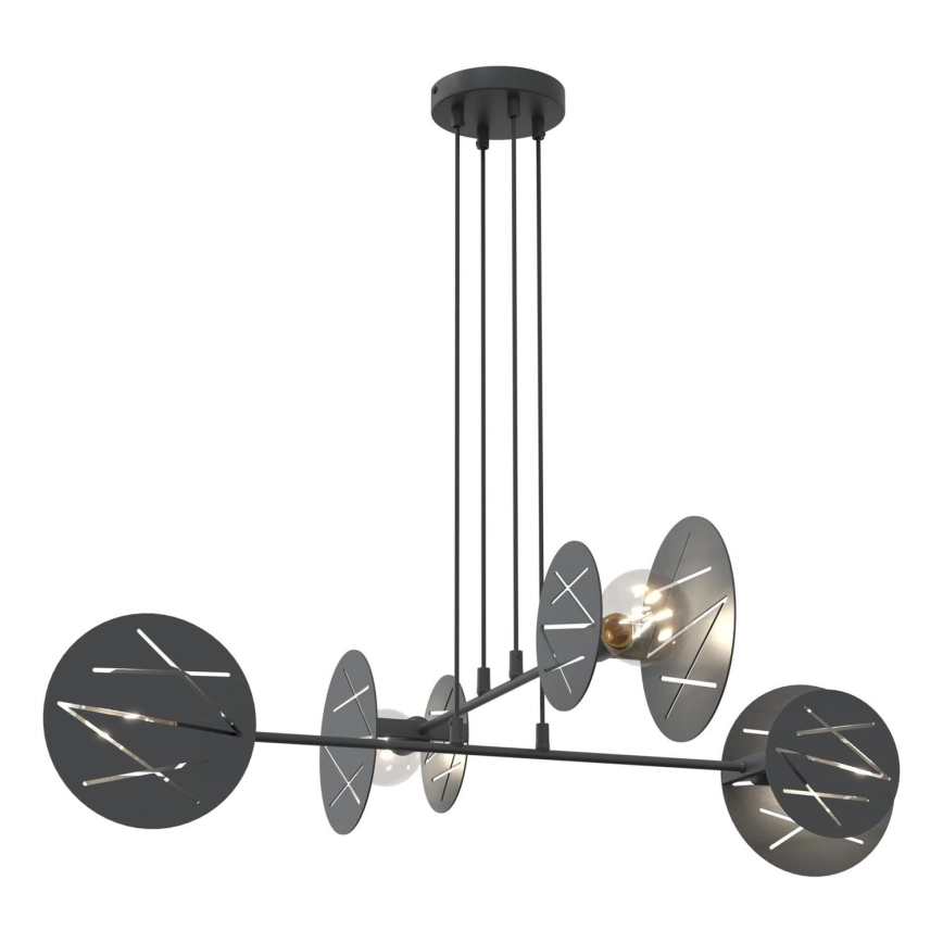 A Csillár zsinóron XOTIC 4xE27/15W/230V fekete a szép és funkcionális dizájn jellemzi.  A világításhoz egy E27 aljzattal ellátott izzó alkalmas. Itt további izzókat vásárolhat kedvező áron. Érdekes kiegészítője lesz otthonának.