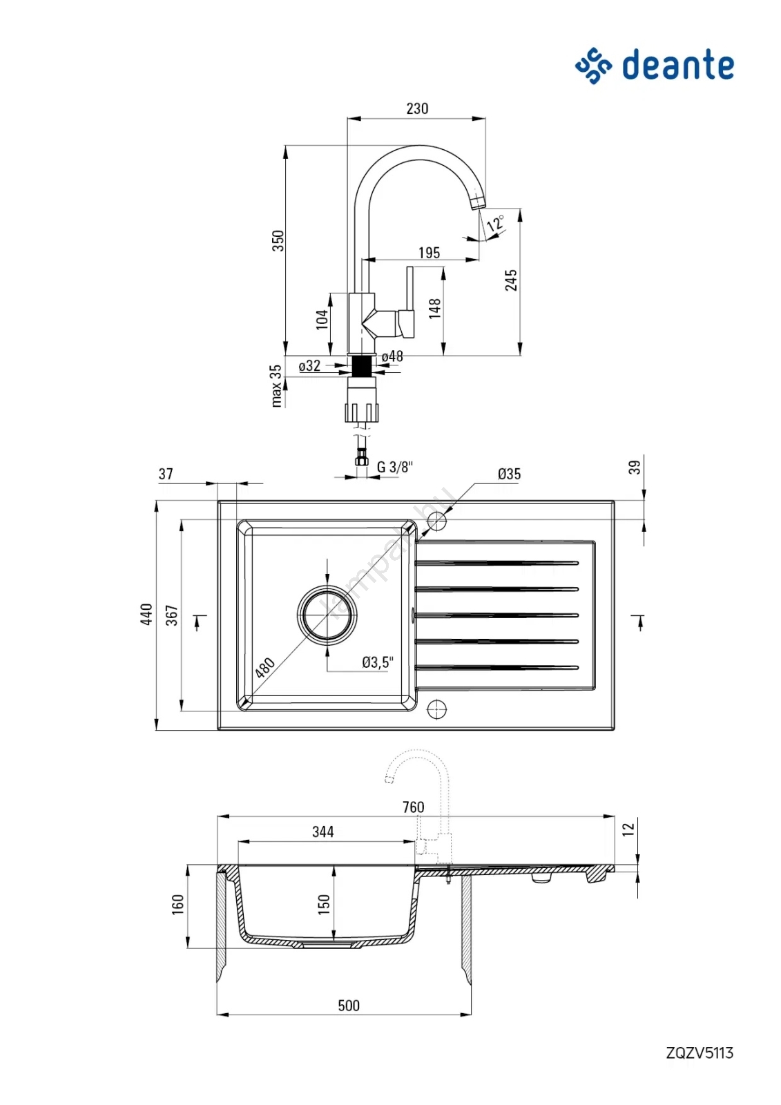 Deante ZQZVT113 - ZORBA konyhai mosogató 76x44 cm + gránit/metál antracit mosogató csaptelep