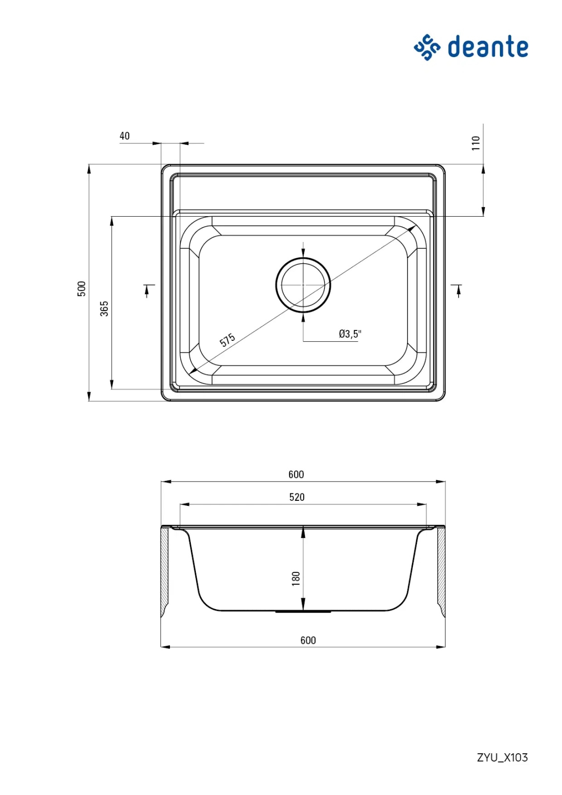Deante ZYU_0103 - SOUL konyhai mosogató 50x60 cm szatén