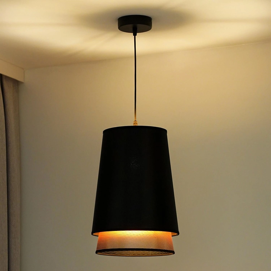 Duolla - Csillár zsinóron BELL SHINY 1xE27/15W/230V átm. 25 cm fekete/réz