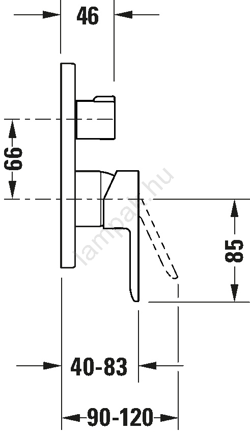 • A falba süllyesztett egykaros csaptelep kádhoz és zuhanyhoz egyaránt alkalmas, és két kimenet vezérlését teszi lehetővé.