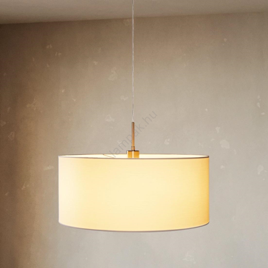 • A lámpatest megjelenését egy fehér színű textil búra emeli ki, melyet fém függeszték egészít ki.