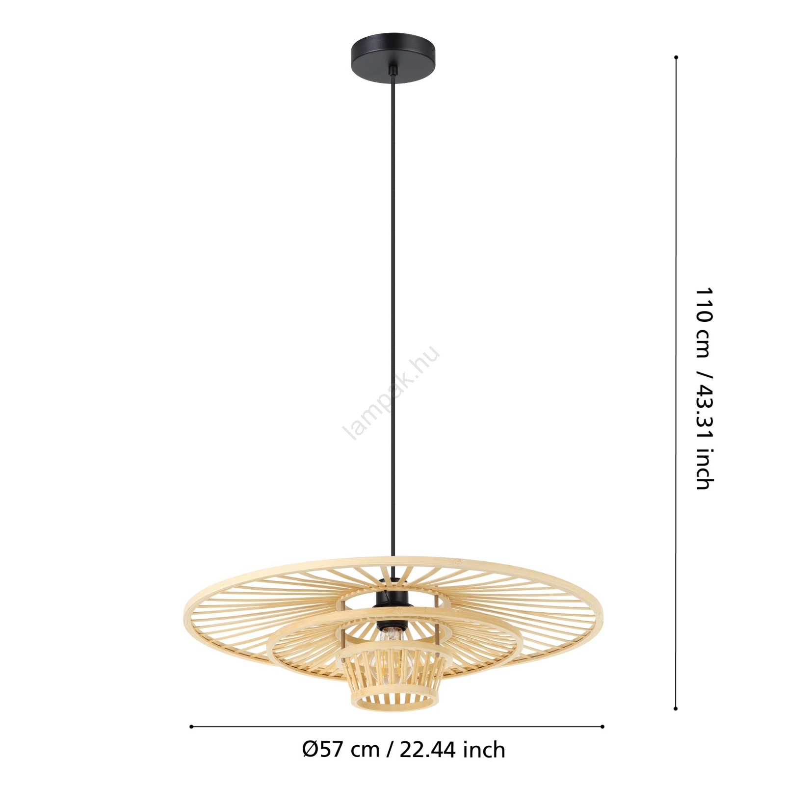 A Eglo - Bambusz függőlámpa kábellel 1xE27/40W/230V a szép és funkcionális dizájn jellemzi.  A világításhoz egy E27 aljzattal ellátott izzó alkalmas. Itt további izzókat vásárolhat kedvező áron. Érdekes kiegészítője lesz otthonának.