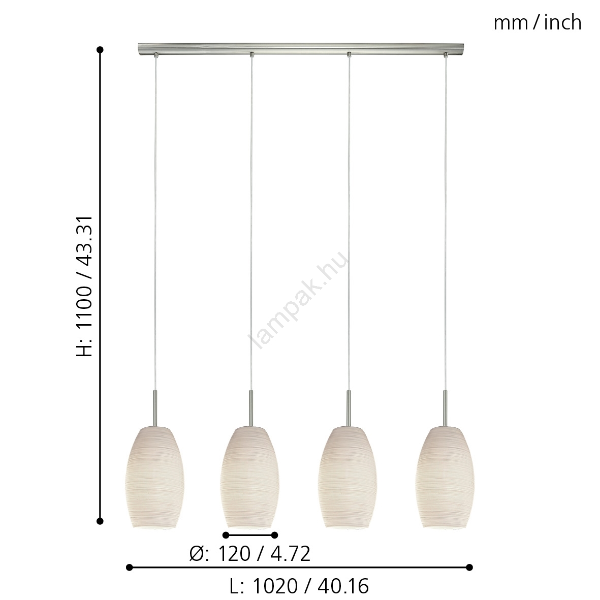 A Eglo - Csillár zsinóron 4xE27/40W/230V a szép és funkcionális dizájn jellemzi.  A világításhoz egy E27 aljzattal ellátott izzó alkalmas. Itt további izzókat vásárolhat kedvező áron. Érdekes kiegészítője lesz otthonának.