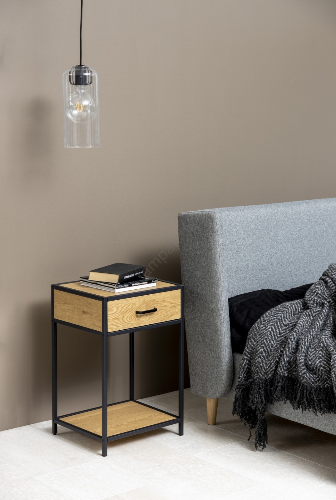 • Ez az ipari dizájn ihlette éjjeliszekrény a természetes és az ipari elemeket ötvözi, amelyek kiválóan kiegészítik egymást.