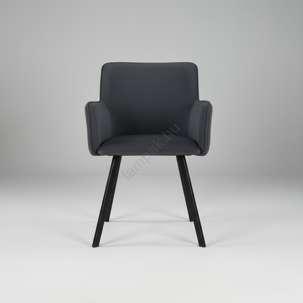 • Kényelmes étkezéshez ez a fém vázas étkezőszék párnázott üléssel, háttámlával és karfával.