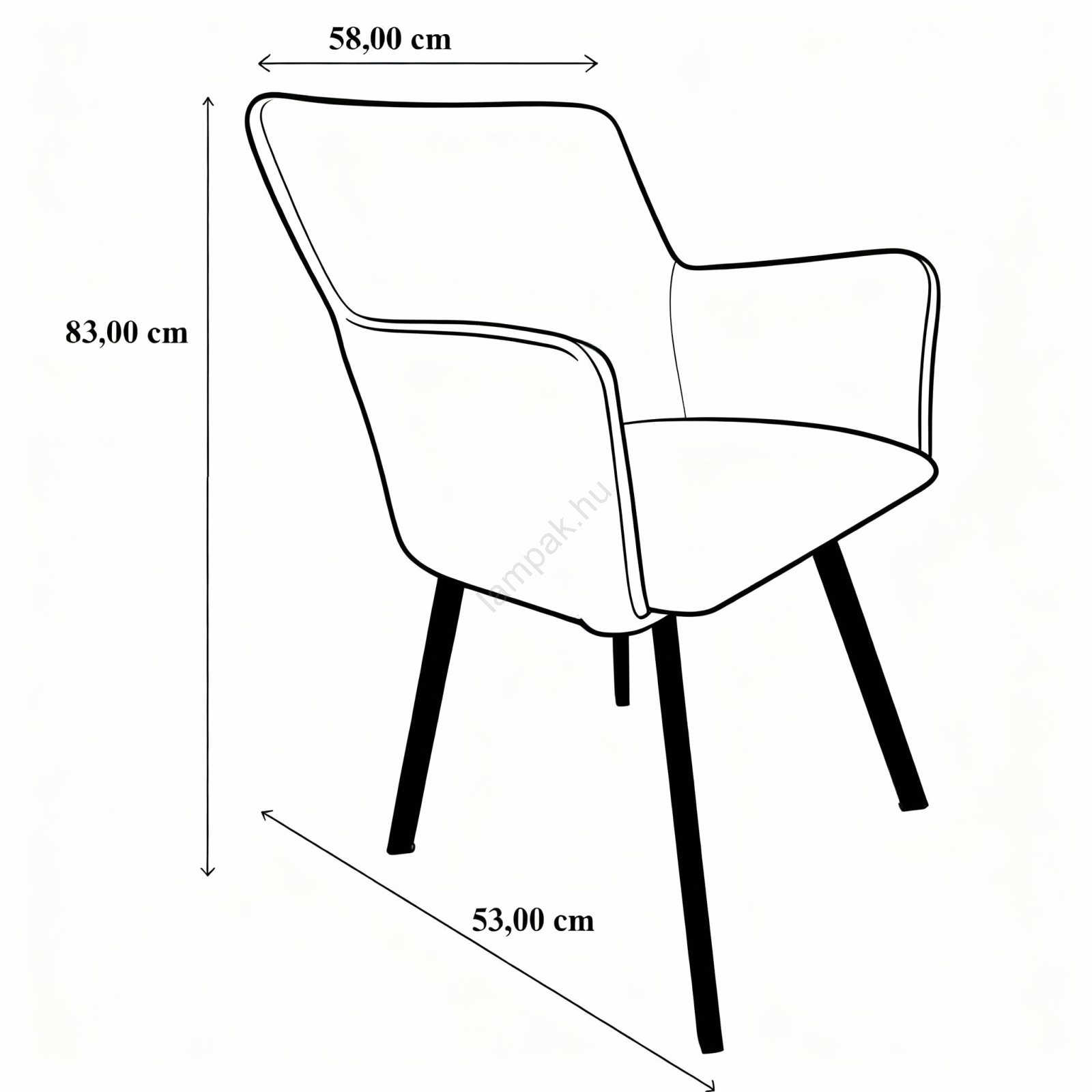 • Kényelmes étkezéshez ez a fém vázas étkezőszék párnázott ülőfelülettel, háttámlával és kartámaszokkal.