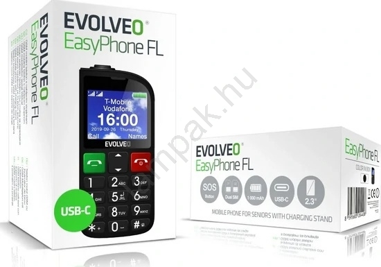 Evolveo - EasyPhone FL, mobiltelefon időseknek, fekete